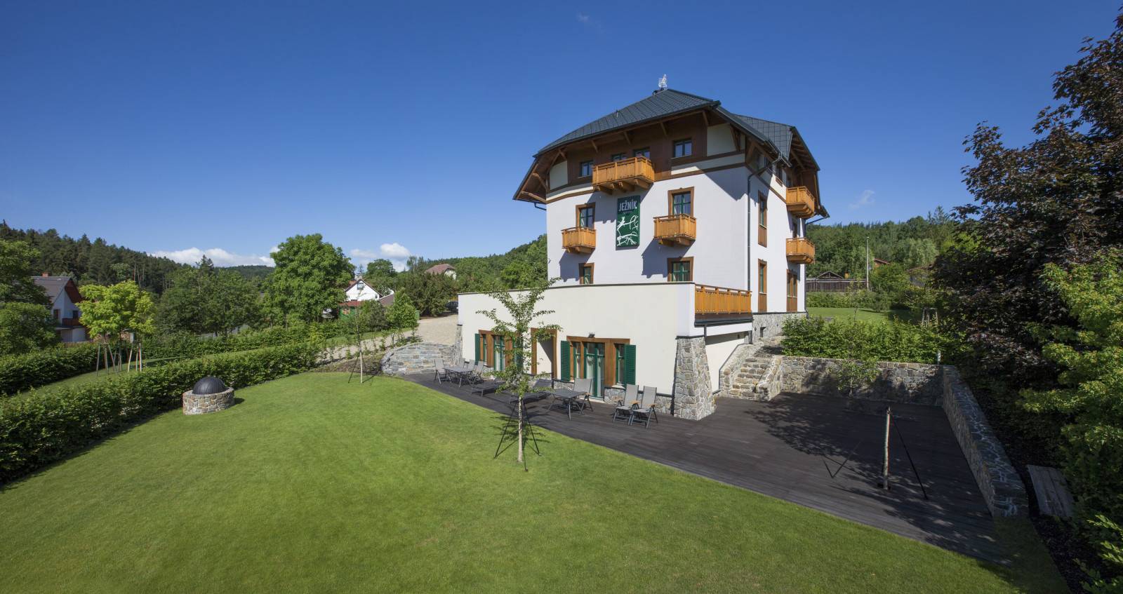 Krátký popisPension Ježník nabízí 9 pokojů a apartmán s celkovou kapacitou 21 lůžek a 6 přistýlek, snídaně, sauna, terasa se zahradou a zahradním nábytkem, parkoviště a wifi zdarma. Elegantní, prostorné, moderně vybavené pokoje s podlahovým topením a terasou/balkónem Vám zajistí maximální pohodlí v příjemném prostředí.