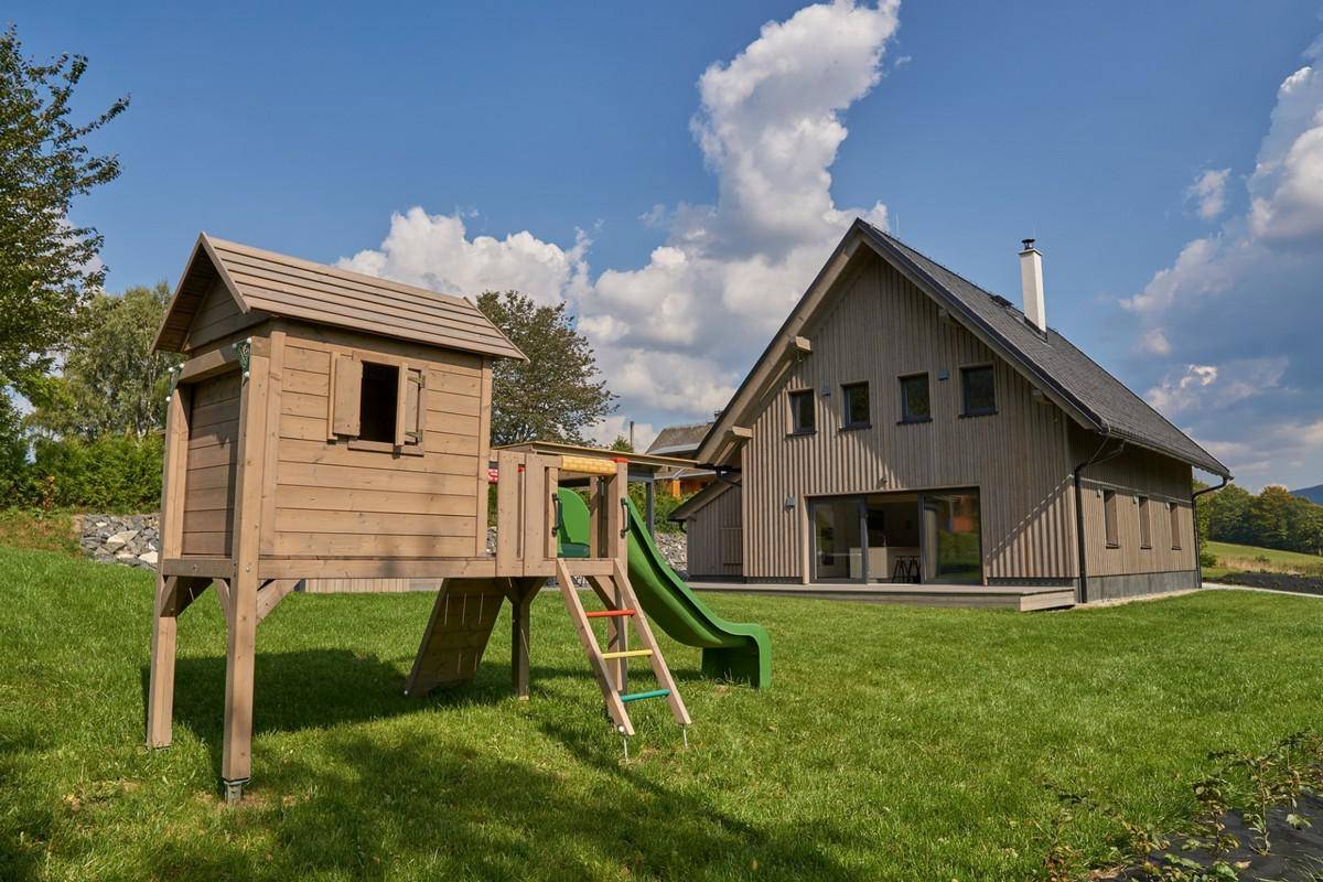 Waze Google MapsAdresa: Filipovice 524790 01 Bělá pod PradědemČeská republika Chata ModřínTyp: Horská chata | Olomoucký kraj | Bělá pod Pradědem | Aktivní Kontaktní údaje Paní Petra Žáčková petra.nikita@seznam.cz +420 604356147 Krátký popisNízkoenergetická Chata Modřín se nachází v klidném prostředí osady Filipovice - Bělá pod Pradědem v Jeseníkách. Nadstandardně vybavená chata nabízí pohodlné ubytování pro dvanáct osob + možnost 3 přistýlek. V přízemí je velká společenská místnost s obývacím pokojem, jídelním koutem a plně a komfortně vybavenou kuchyní s myčkou nádobí , indukčním sporákem, elektrickou troubou, mikrovlnnou troubou, rychlovarnou konvicí... Dále je zde koupelna s prostornou vanou, sprchový kout, samostatné WC, finská sauna s dalším sprchovým koutem a odpočinkovou zónou. V 1. patře jsou čtyři pokoje, dva bez podkrovní ložnice a dva s podkrovní ložnicí , v jednom z nich je i malá herna pro větší děti. Také se v patře nachází druhá koupelna se sprchovým koutem a s WC. Vybavenost chaty zahrnuje: krbová kamna na vysokovýhřevné dřevěné brikety, TV, wi-fi, venkovní vířivku s prosklenými stěnami proti větru , zastřešenou terasu s posezením, venkovní ohniště u chaty a v letních měsících od června i venkovní bazén.Více na: Stránkách ubytovatele Statistiky Přehled na ubytovatele Max: 150000 CZK Čerpáno: 150000 CZK Zbývá: 0 CZK Zbývá osobonocí: 0 Zbývá osobonocí: 66 (kraj) Bohužel - u tohoto ubytovatele již není možné žádat. Celková kapacita voucherů ubytovatele byla již vyčerpána.